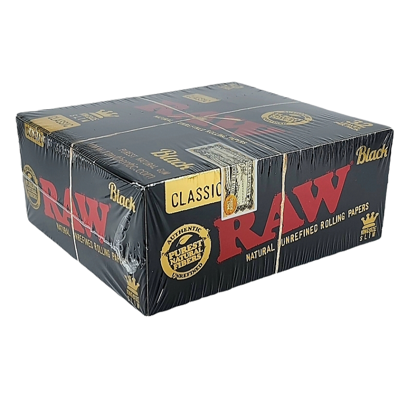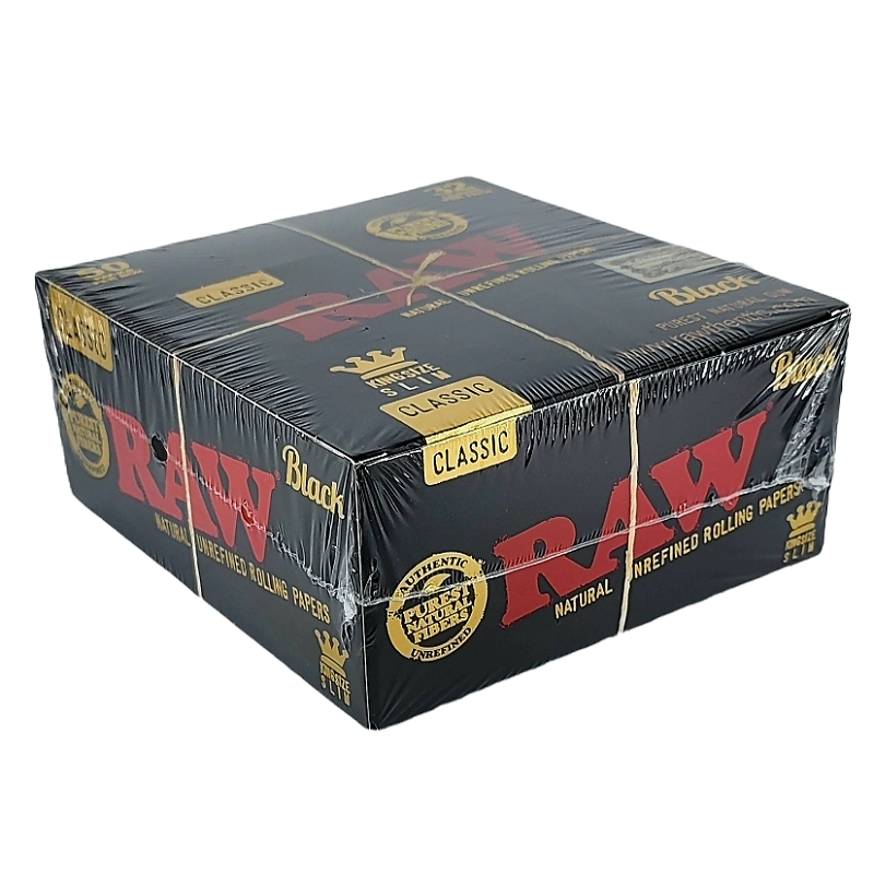 AUTHENTIC 50 Packs Box Raw Black Classic King Size Slim Natural Rolling Papers.